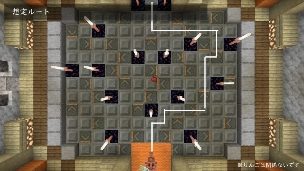 ・一見一筆書きのように見えるが、模様入りの凝灰岩レンガの上は、複数回のれる。