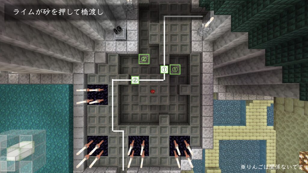 ・ライムベッドにライム色砂を運ぶ。その上にライムゴーレムを乗せて寝る